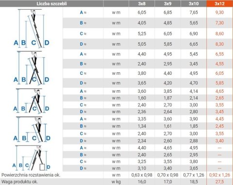 W wersjach 3x12 i 3x14 szczebli w komplecie rolki przyścienne ułatwiające rozsuwanie drabiny