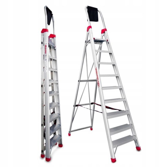 Dzięki szerokim na 13cm, ryflowanym stopniom drabina jest bezpieczna i ergonomiczna. Mocna i trwała konstrukcja, specjalny lotniczy system montażu stopni zapewnia 100% bezpieczeństwo podczas użytkowania drabiny.