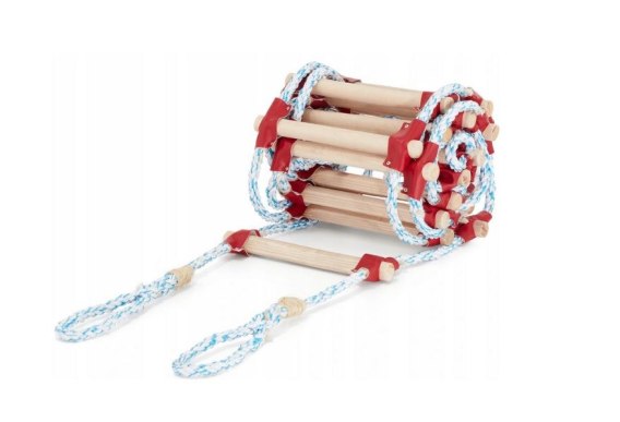 Drabina sznurowa polipropylenowa ze szczeblami antypoślizgowymi z drewna bukowego o nośności 250kg - długość 7 metrów.