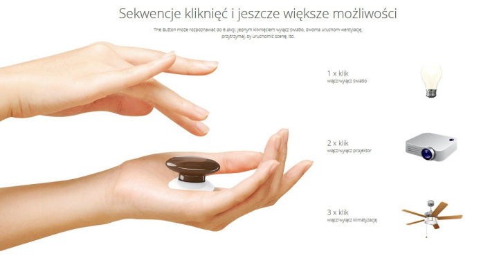 The Button może rozpoznawać do 6 akcji. Jednym kliknięciem wyłącz światło, dwoma uruchom wentylację, przytrzymaj, by uruchomić scenę.