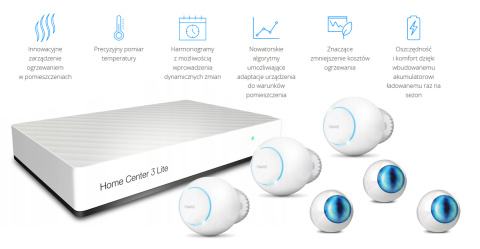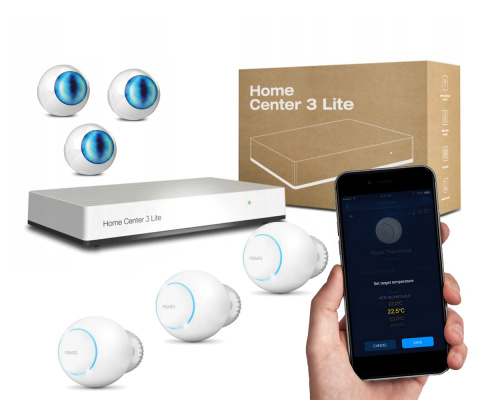 Prezentowany zestaw zawiera centralę Fibaro Home Center Lite 3, oraz termostaty do sterowania zaworami grzejnikowymi wraz z czujnikami temperatury. Zestaw możesz rozbudowywać o kolejne urządzenia i funkcje, dostosowując go do swoich potrzeb i preferencji.