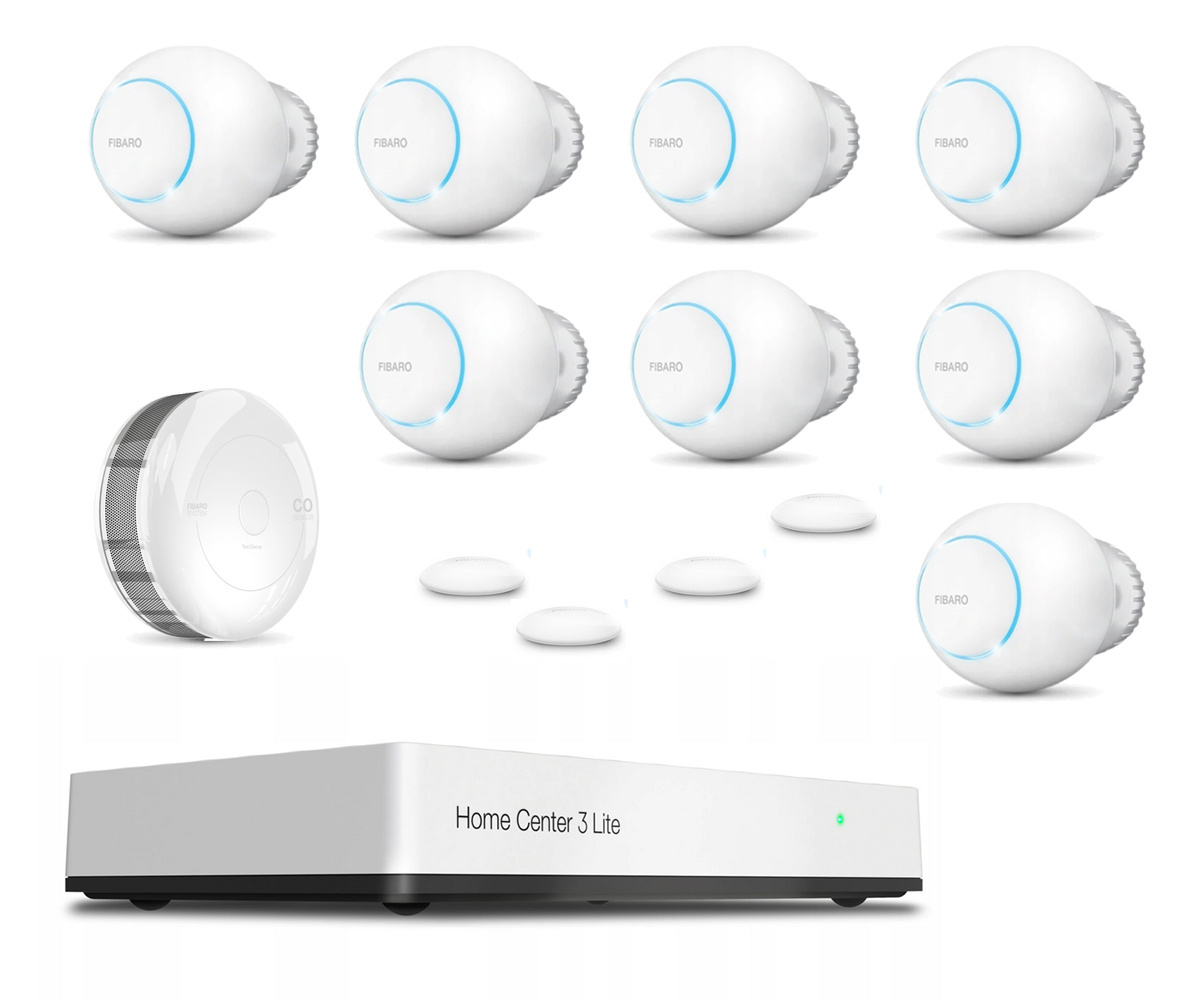 Prezentowany zestaw to podstawa, która zawiera centralę Fibaro Home Center Lite 3, oraz termostaty do sterowania zaworami grzejnikowymi wraz z czujnikiem tlenku węgla i temperatury. Zestaw możesz rozbudowywać o kolejne urządzenia i funkcje, dostosowując go do swoich potrzeb i preferencji.