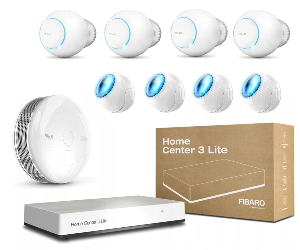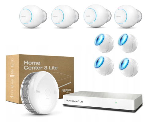 Prezentowany zestaw to podstawa, która zawiera centralę Fibaro Home Center Lite 3, oraz termostaty do sterowania zaworami grzejnikowymi wraz z czujnikiem dymu i temperatury, oraz ruchu. Zestaw możesz rozbudowywać o kolejne urządzenia i funkcje, dostosowując go do swoich potrzeb i preferencji.
