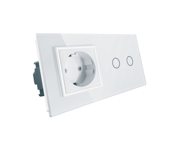 Komplet zawiera panel szklany LIVOLO, wkład gniazda oraz wkład włącznika podwójnego.Front wykonany z hartowanego szkła kryształowego, niezwykle łatwy do utrzymania w czystości. Idealnie wpasowuje się w nowoczesne oraz eleganckie wnętrza. Istnieje możliwość dobrania innej konfiguracji kolorystycznej
