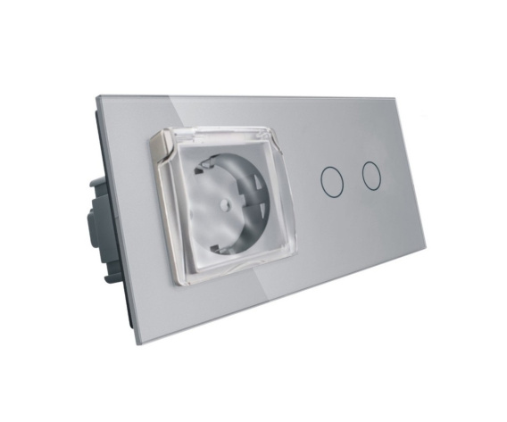 Komplet zawiera panel szklany LIVOLO, wkład gniazda oraz wkład włącznika podwójnego oraz wkładkę bryzgoszczelną w kolorze frontu. Front wykonany z hartowanego szkła kryształowego, niezwykle łatwy do utrzymania w czystości. Idealnie wpasowuje się w nowoczesne oraz eleganckie wnętrza. Istnieje możliwość dobrania innej konfiguracji kolorystycznej