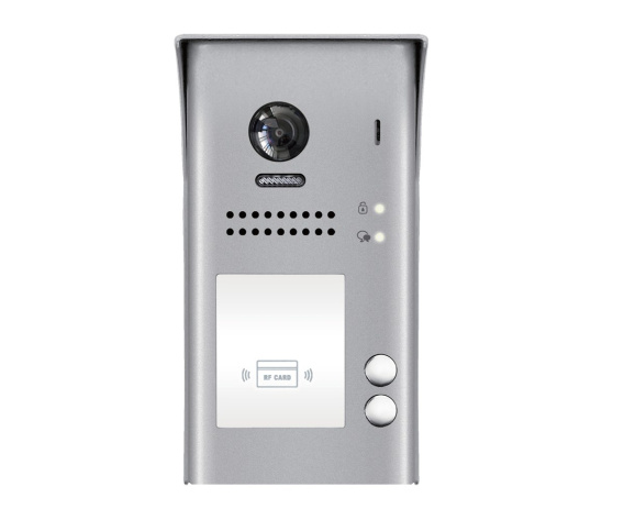 Stacja bramowa wideodomofonu VDA-81A5 to dwulokatorska kaseta zewnętrzna w pełni kompatybilna z systemem Eura 2 Easy. Wyposażona jest w czytnik kart i breloków zbliżeniowych, służących do otwierania wejścia na teren posesji. Do przesyłania sygnału wideo wykorzystano kolorową szeroko-kątną kamerę typu Fisheye, obserwację o zmroku wspomaga zestaw 3 diod LED świecą - cych światłem białym, wraz z czujnikiem zmierzchowym. Kaseta wideodomofonu VDA-81A5 jest przeznaczone do montażu natynkowego.