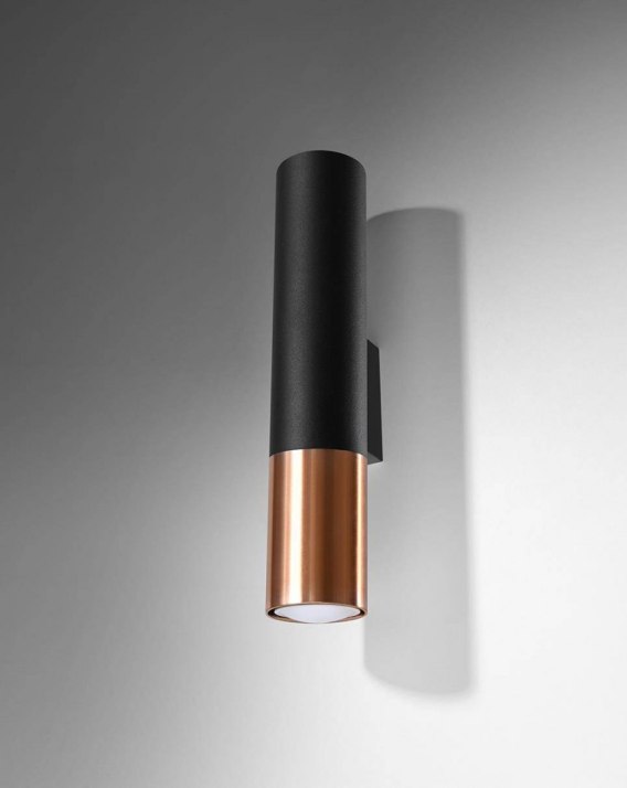 Źródło światła: GU10, 2x max 10W LED, ~230V, 50Hz, IP20, klasa ochronności I Źródło światła nie jest w komplecie. Wymiary: 6/8/29 cm Materiał: stal Kolor: czarny, miedź