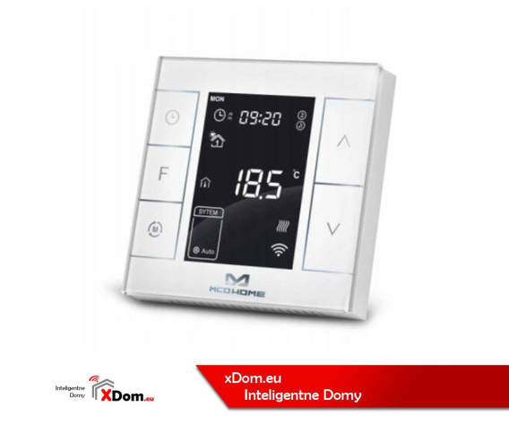 Termostat MCOHome Z-Wave z dużym ekranem LCD do sterowania podgrzewaczem wody/ boilerem. Produkt firmy MCOHome jest urządzeniem elektronicznym przeznaczonym do montażu w puszcze. Można go wykorzystać między innymi w systemach automatyki budynkowej. Działając na podstawie wbudowanego modułu Z-Wave jest produktem komplementarnym z systemem Fibaro. Urządzenie posiada wbudowany czujnik temperatury.