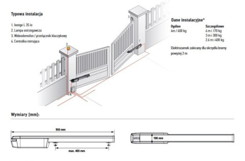 Umożliwia otwieranie skrzydeł o długości do 4 m i wadze do 400 kg