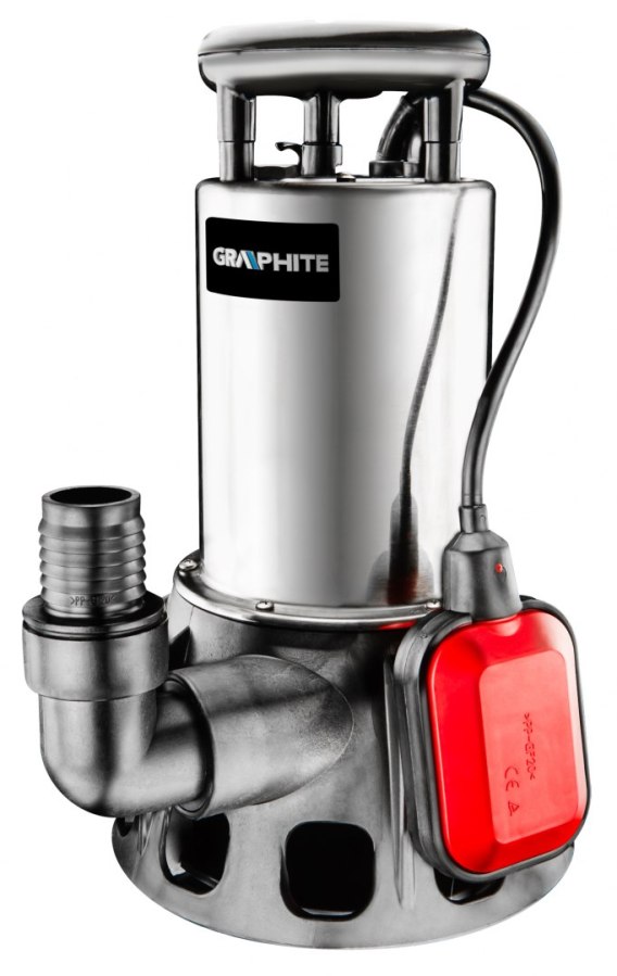Pompa wodna zanurzeniowa GRAPHITE o mocy 900 W, przeznaczona do przepompowywania czystej i brudnej wody, przy czym wielkość zanieczyszczeń nie powinna przekraczać 20 mm. Wydajność pompy to 17000 litrów w ciągu godziny. Wykonane ze stali nierdzewnej urządzenie posiada I klasę ochronności, stopień IP68.