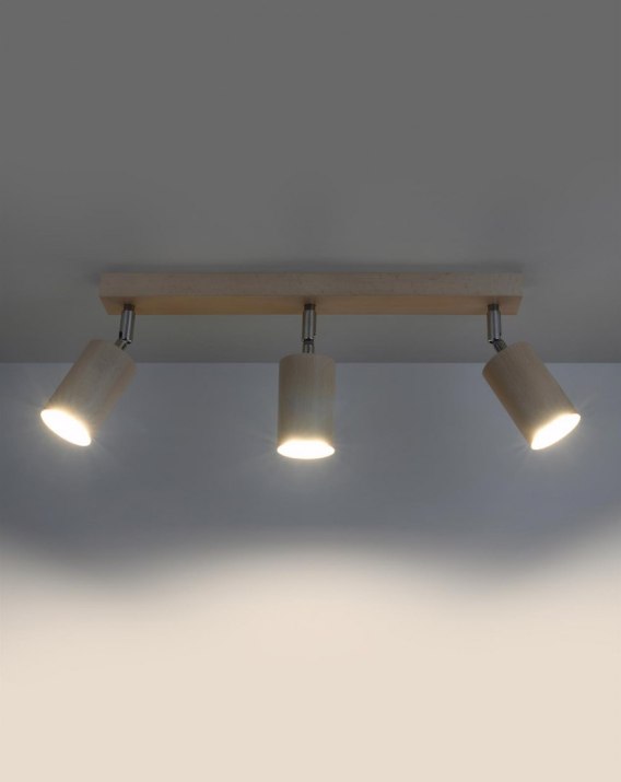 Źródło światła: GU10, 3x max 10W LED, ~230V, 50Hz, IP20, klasa ochronności IŹródło światła nie jest w komplecie.Wymiary: 45/5/20 cmMateriał: drewno Kolor: naturalne drewno
