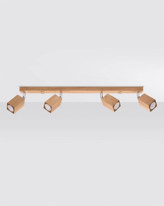 Źródło światła: GU10, 4x max 10W LED, ~230V, 50Hz, IP20, klasa ochronności IŹródło światła nie jest w komplecie.Wymiary: 80/5/20 cmMateriał: drewno Kolor: dąb