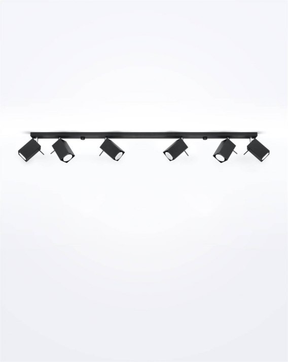 Źródło światła: GU10, 6x max 10W LED, ~230V, 50Hz, IP20, klasa ochronności IŹródło światła nie jest w komplecie.Wymiary: 118/6/16 cmMateriał: stalKolor: czarny