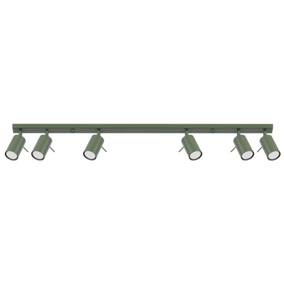 Źródło światła: GU10, 6x max 10W LED, ~230V, 50Hz, IP20, klasa ochronności IŹródło światła nie jest w komplecie.Wymiary: 117/6/17 cmMateriał: stalKolor: zielony oliwkowy