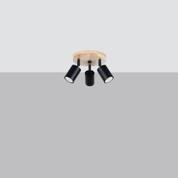 Źródło światła: GU10, 3x max 10W, ~230V, 50Hz, IP20, klasa ochronności IŹródło światła nie jest w komplecie. Wymiary: 33/33/17 cmMateriał: stal/drewnoKolor: czarny, naturalne drewno
