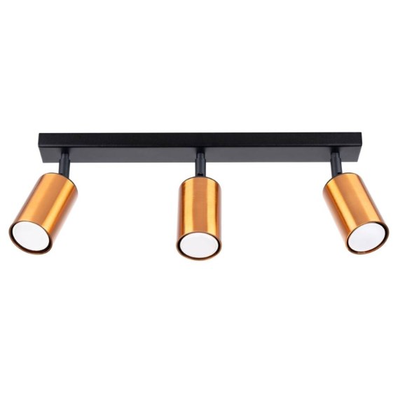 Źródło światła: GU10, 3x max 10W LED, ~230V, 50Hz, IP20, klasa ochronności IŹródło światła nie jest w komplecie.Wymiary: 45/6/18,5 cmMateriał: stalKolor: czarny, miedź