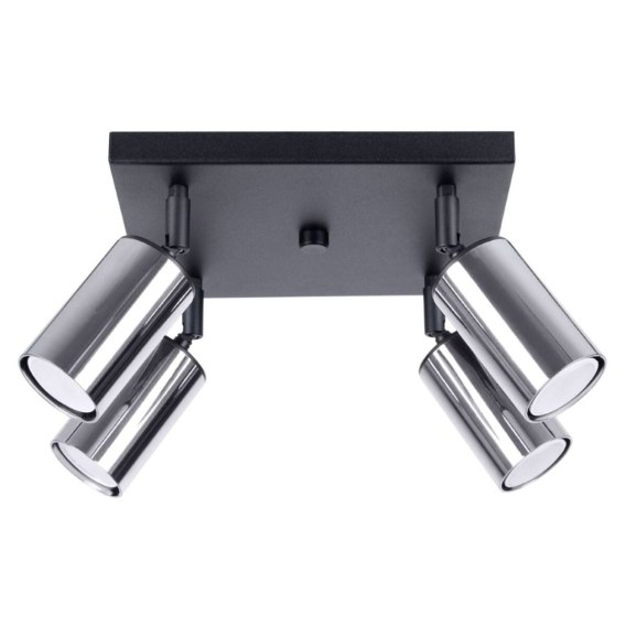 Źródło światła: GU10, 4x max 10W LED, ~230V, 50Hz, IP20, klasa ochronności IŹródło światła nie jest w komplecie.Wymiary: 25/25/19 cmMateriał: stalKolor: czarny, chrom