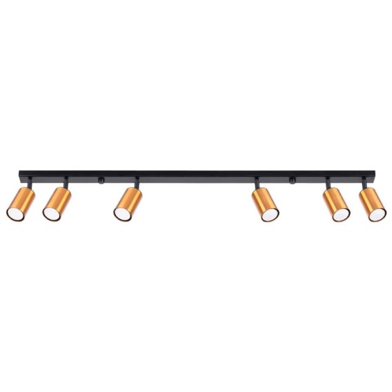 Źródło światła: GU10, 6x max 10W LED, ~230V, 50Hz, IP20, klasa ochronności IŹródło światła nie jest w komplecie.Wymiary: 118/6/18,5 cmMateriał: stalKolor: czarny, miedź