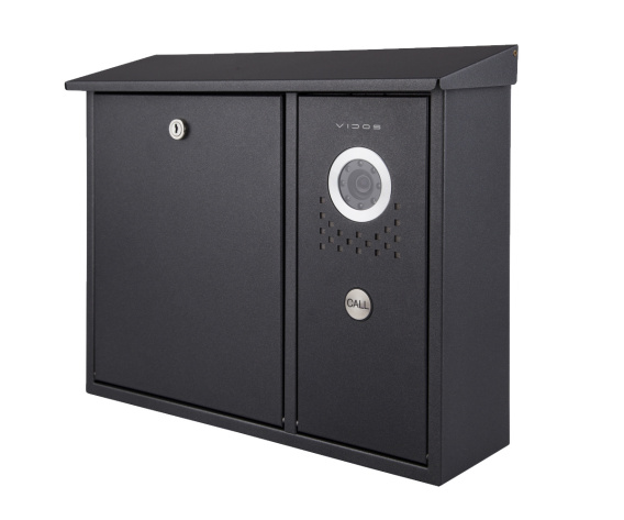 Zewnętrzna, wisząca, jednowrzutowa skrzynka na listy z wbudowanym panelem wideodomofonowym Vidos S551. Skrzynka przeznaczona jest do montażu natynkowego na ogrodzeniu lub ścianie. Dzięki zastosowaniu materiałów najwyższej jakości jest odporna na działanie czynników atmosferycznych.