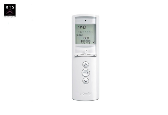 SOMFY TELIS 16 RTS Pure - pilot do bezpośredniego sterowania roletami, markizami , żaluzjami i oświetleniem. Posiada przyciski do sterowania ruchem osłon: góra, stop, dół. Dla wygody użytkowania jest możliwość nazwania każdego kanału i przypisania do niego jednego z piktogramów, oznaczającego rodzaj sterowanego obiektu. Dostępny jest w dwóch wersjach kolorystycznych: Pure i Silver.
