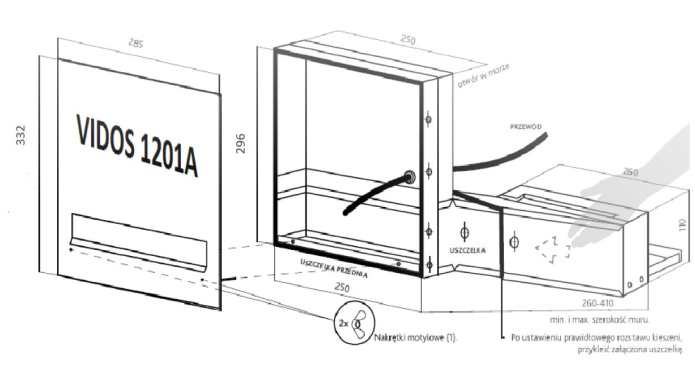 Przelotowa jednowrzutowa skrzynka na listy z wbudowanym panelem wideodomofonowym VIDOS DUO S1201.