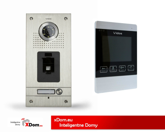 Zestaw jednorodzinny biometryczny wideodomofonu z czytnikiem linii papilarnych.