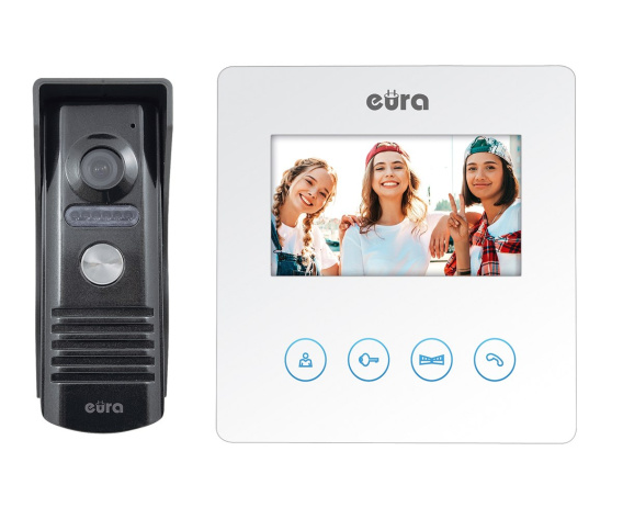 Monitor wyposażony jest w kolorowy wyświetlacz LCD o przekątnej 4,3” oraz dotykowe klawisze. Oprócz standardowych funkcji komunikacji z osobą odwiedzającą, podglądu otoczenia kamery oraz sterowania ryglem przy wejściu na posesję, monitor umożliwia sterowanie drugim wejściem na posesję. Pokrętła regulacyjne umożliwiają dostosowanie głośności rozmowy, jasności oraz nasycenia obrazu. Używając przycisku znajdującego się nad nimi użytkownik może wybrać jedną z 16 dostępnych melodii gongu.