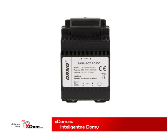 Zasilacz przystosowany do montażu w rozdzielni prądowej na szynę DIN przeznaczony do wideodomofonów Orno