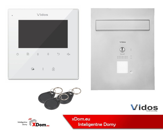 Zestaw Cyfrowy Vidos S1201-SKP Skrzynka na listy z wideodomofonem i czytnikiem kart, M1022W Monitor 4.3'' wideodomofonu