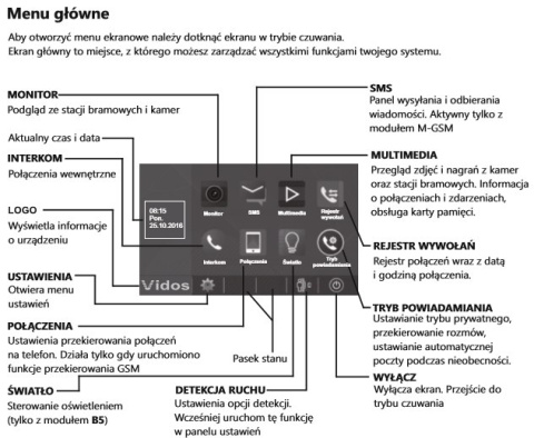 Wielofunkcyjny monitor przeznaczony do pracy w systemie VIDOS DUO. Dedykowany dla systemów jednorodzinnych i wieloabonentowych.