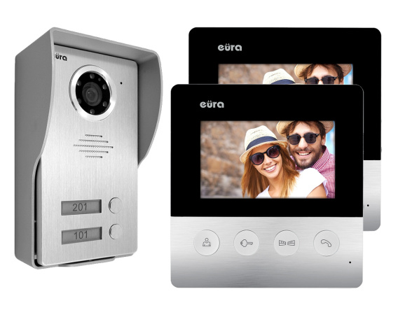 Głośnomówiący monitor VDA-19A3 z serii Eura Connect stanowi komponent zestawu wideodomofonowego VDP-19A3 Helios. Ponadto pozostaje kompatybilny z pozostałymi urządzeniami działającymi w systemie Eura Connect.Kolorowy monitor wyposażony jest w pokrętła regulacyjne umożliwiające dostosowanie głośności rozmowy, jasności oraz nasycenia obrazu. Używając przycisku znajdującego się nad nimi użytkownik może wybrać jedną z 16 dostępnych melodii gongu. Monitor posiada także funkcję komunikacji z osobą odwiedzającą, podglądu otoczenia kamery oraz sterowania ryglem przy wejściu na posesję, a także możliwość obsługi drugiego wyjścia, np. bramy.