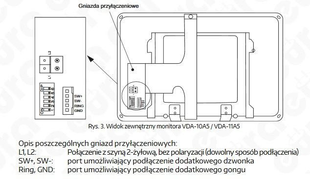 VDA-10A5 to kolorowy monitor z dotykowym ekranem, pracujący w 2-żyłowym systemie Eura Pro 2 Easy. Umożliwia nagrywanie zdjęć i nagrań z kasety wewnętrznej dzięki pamięci zawenętrznej i wewnętrznej. W rozbudowanej konfiguracji systemu dostępna jest funkcja interkomu wewnątrz- i międzylokatorskiego