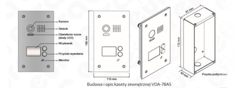 Kaseta zewnętrzna VDA-78A5, wandaloodporna, podtynkowa, pracująca w 2-żyłowym systemie Eura 2 Easy.