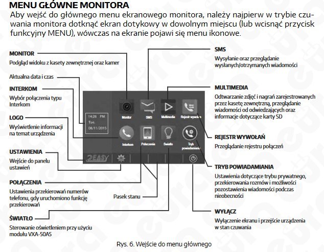 możliwość zdalnej obsługi systemu za pomocą stacjonarnego lub komórkowego aparatu telefonicznego. Oprócz kaset zewnętrznych, istnieje możliwość podłączenia do systemu również kamer monitorujących CCTV.