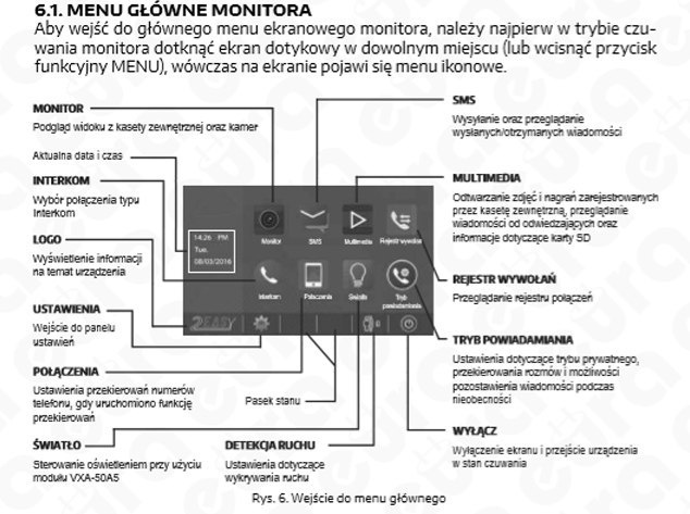 możliwość zdalnej obsługi systemu za pomocą stacjonarnego lub komórkowego aparatu telefonicznego. Oprócz kaset zewnętrznych, istnieje możliwość podłączenia do systemu również kamer monitorujących CCTV.