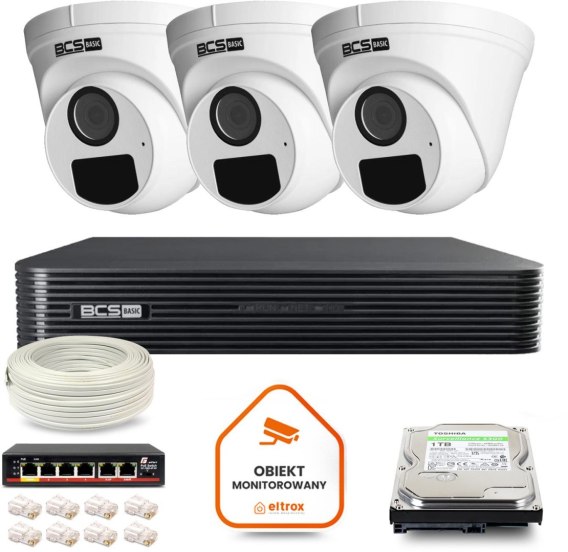 Zestaw monitoringu IP BCS Basic 3x Kamera BCS-B-EIP15FR3(2.0) Rejestrator z dyskiem