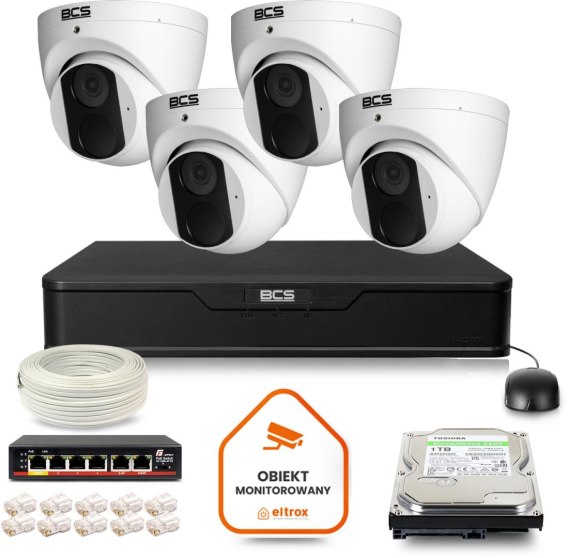 Zestaw monitoringu IP BCS Point 4x Kamera BCS-P-EIP14FSR3 Rejestrator z dyskiem 1TB