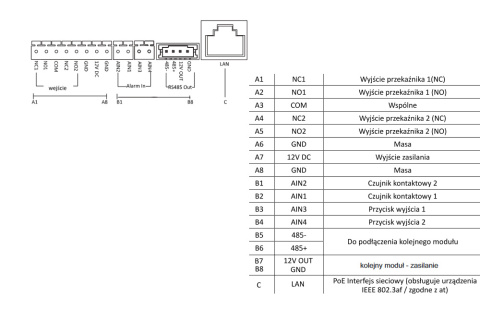Wyjścia przekaźnikowe: 2x NC/NO (30V, 1A)