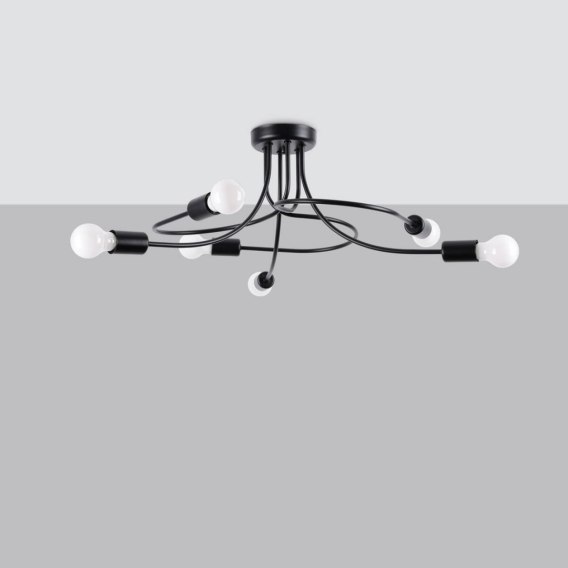 Źródło światła: E27, 6x max 15 W LED, ~230V, 50Hz, IP20, klasa ochronności IŹródło światła nie jest w komplecie.Wymiary: 69/66/29 cmMateriał: stalKolor: czarny