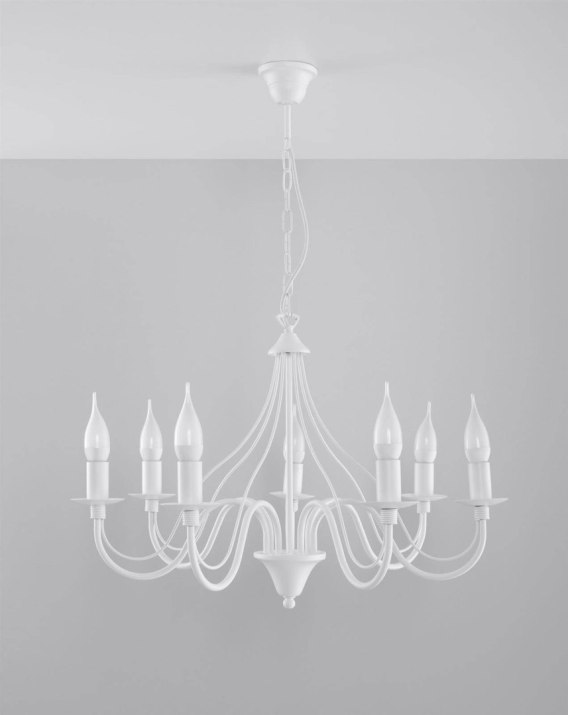 Źródło światła: E14, 7x max 10 W LED, ~230V, 50Hz, IP20, klasa ochronności IŹródło światła nie jest w komplecie.Wymiary: 60/60/80 cmMateriał: stalKolor: biały