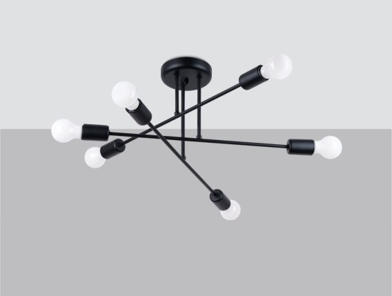 Źródło światła: E27, 6x max 15W LED, ~230V, 50Hz, IP20, klasa ochronności IŹródło światła nie jest w kompelcie.Wymiary: 65/65/29 cmMateriał: stalKolor: czarny