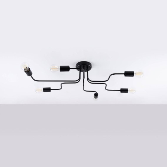 Źródło światła: E27, 6x max 15W LED, ~230V, 50Hz, IP20, klasa ochronności IŹródło światła nie jest w kompelcie.Wymiary: 80/64/15,5 cmMateriał: stalKolor: czarny