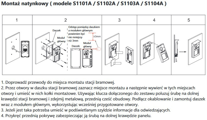 zbliżania obrazu ( zoom ). Stacja bramowa posiada wbudowane złącze dla czujnika ruchu (PIR), co pozwala na podłączenie takiej czujki i korzystanie z funkcji detekcji ruchu ( Funkcja detekcji jest dostępna tylko z monitorami – M1021 ).